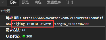 请求url为https://www.qweather.com/v1/current/condition/beijing-101010100.html,