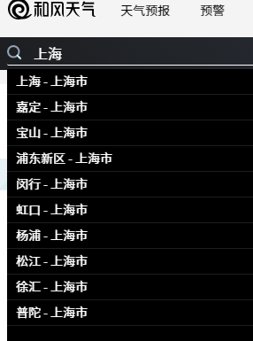 左上角有个搜索栏,我们搜索一下上海,会出现很多条结果: